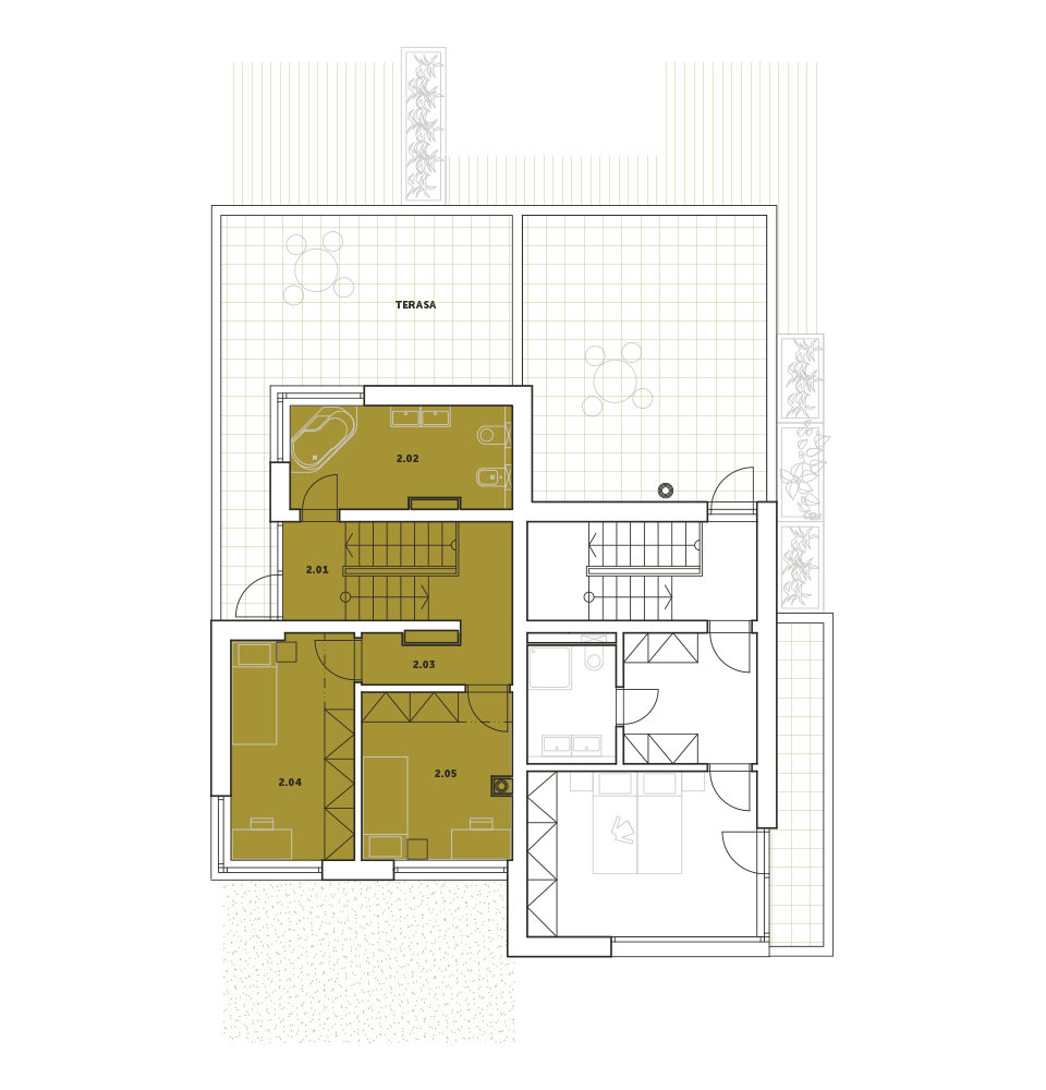 Prostorný rodinný dům s dispozicí 4+kk s jednogaráží a technickou místností v 1.PP nabízí hlavní obytný prostor v 1.NP včetně na jih orientované lodžie a ložnice s vlastní šatnou a koupelnou. V 2. NP jsou pak dva dětské pokoje, velká koupelna a rozlehlá terasa. K domu náleží zahrada o výměře 130 metrů.